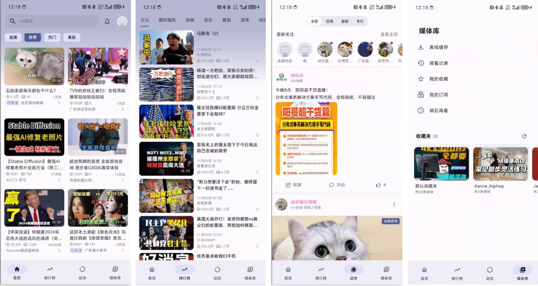 3.1 首页、排行榜、动态、媒体库